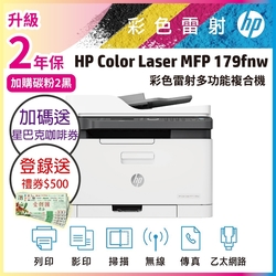 HP Color Laser MFP 179fnw 彩色雷射複合機(取代M183fw)《加碼再送咖啡券+登錄送500禮券》$13,990