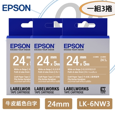 EPSON 24mm LK-6NW3 牛皮紙色白字 標籤帶 3入組 牛皮紙工藝系列 適用LW-C610 600P K740 K600 1000P$1,240