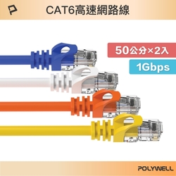 POLYWELL CAT6 高速乙太網路線 UTP 1Gbps 50公分 (2入)$11483折