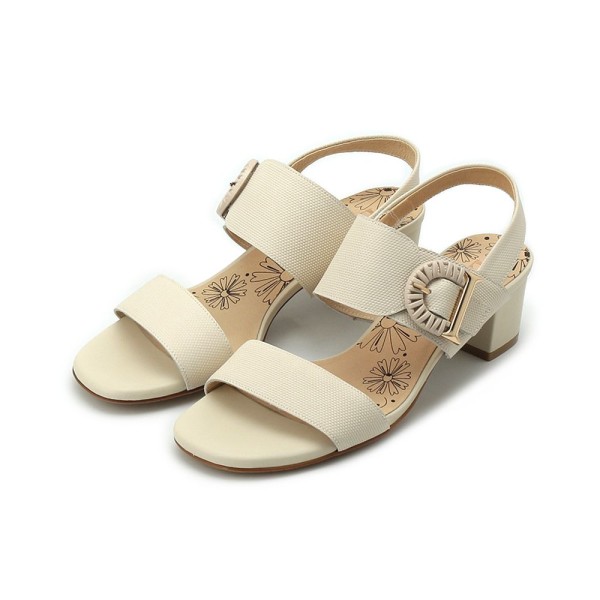 商店LUZZI D字編釦粗跟涼鞋 米 女鞋