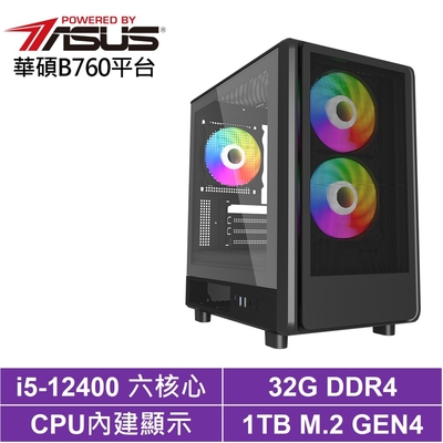 華碩平台 i5-12400 六核心{慶雲躍日V W}WIN11文書機(I5-12400/H610/16G D4/1TB)
