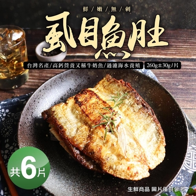 築地一番鮮-自然生態比臉大去刺虱目魚肚6片免運組(260±30g/片)