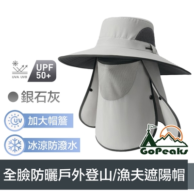 GoPeaks 加大帽簷全臉防曬抗UV戶外登山/漁夫遮陽帽 銀石灰$564$599