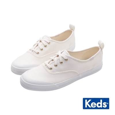 Keds CHAMIPON 復古率性綁帶帆布休閒小白鞋 9233W112227