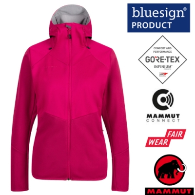 【MAMMUT 長毛象】AF 女 Convey Tour HS Hooded 超輕量 GORE-TEX 防水防風透氣外套.夾克_1010-28801-3747 櫻花鮭粉/陶紅