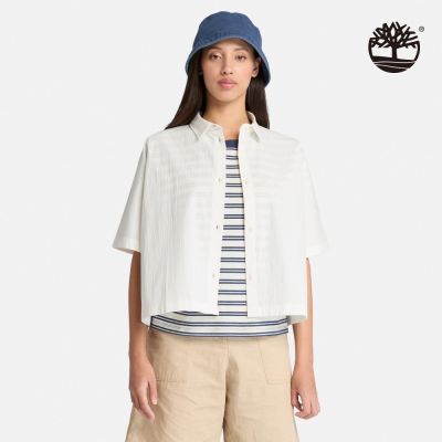 【WILDLAND荒野】女彈性格紋輕薄抗UV長袖襯衫45地中海藍