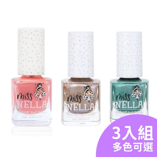 商店【三入組】Miss Nella 水溶性無毒可撕式指甲油4ml-3入組(顏色任選)兒童指甲油