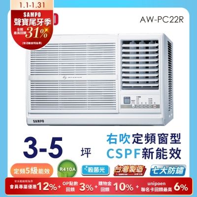 SAMPO聲寶 3-5坪 4級定頻直立式窗型冷氣 AT-PF122 ★含基本安裝+舊機回收★$18,8109折