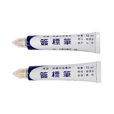 【大雄】紡織印染專用簽標筆 耐漂染 (紅色、黃色) 52ml 2支入 / 組