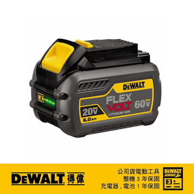 DEWALT 得偉 20V/60V max XR超鋰電電池(6.0Ah) (DCB606)