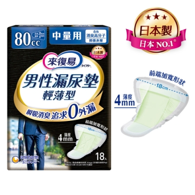 來復易 男性漏尿專用棉墊中量型80cc(18片/包)(漏尿專用)