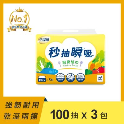 倍潔雅秒抽瞬吸抽取式廚房紙巾-100抽3包/袋