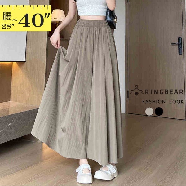 加大尺碼寬褲裙--素雅飄逸鬆緊褲頭休閒遮肉顯瘦山本褲裙(黑.咖L-3L)-P199眼圈熊中大尺碼