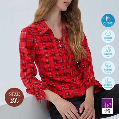 ILEY伊蕾 英倫格紋純棉造型袖上衣(紅色;M-2L)1233281502$1,380