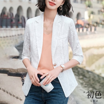 初色 休閒蕾絲薄款中長袖西裝上衣外套-共3色-66269(M-2XL可選)$349