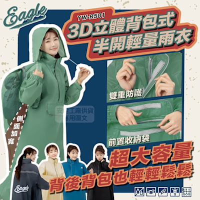 Eagle 立體背包式 一件式雨衣 YW-R501 側開大容量 前開口袋 莫蘭迪四色$799