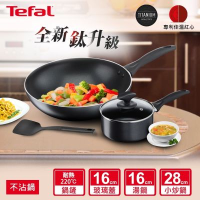 Tefal法國特福 爵士系列不沾鍋-彩盒四件組(28CM炒鍋+16CM湯鍋+鍋蓋+鍋鏟)