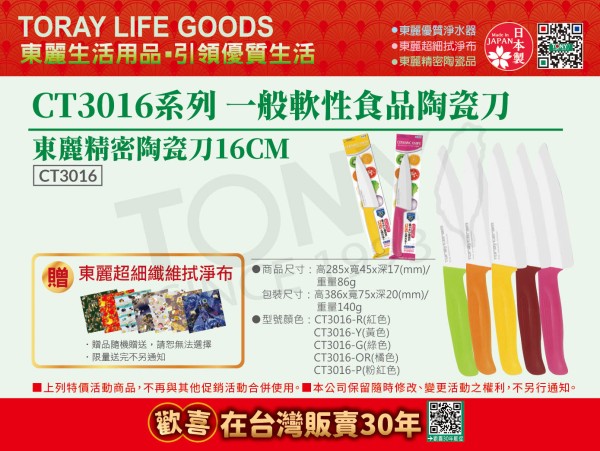 商店【東麗30周年-買就送拭淨布】日本東麗 軟性食品陶瓷刀 CT3016(刀片長16公分)總代理品質保證