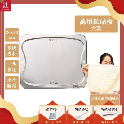 TiANN 鈦安純鈦餐具 專利萬用鈦砧板(大款-36x30)/切菜板/砧盤/抗菌砧板/沾板/烘焙烤盤/露營餐盤