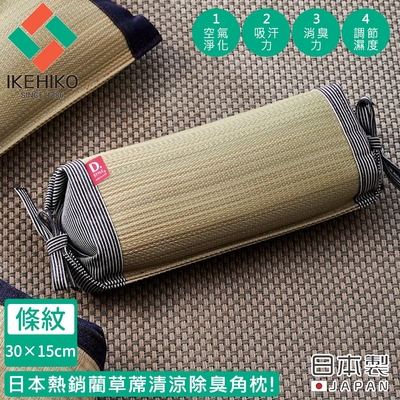 日本池彥IKEHIKO 日本製藺草蓆清涼除臭三角枕頭15×30CM-條紋款$999