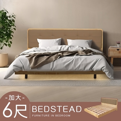 Homelike 喜家居雙人加大6尺懸浮感應燈實木床架組(附床板)(2421)