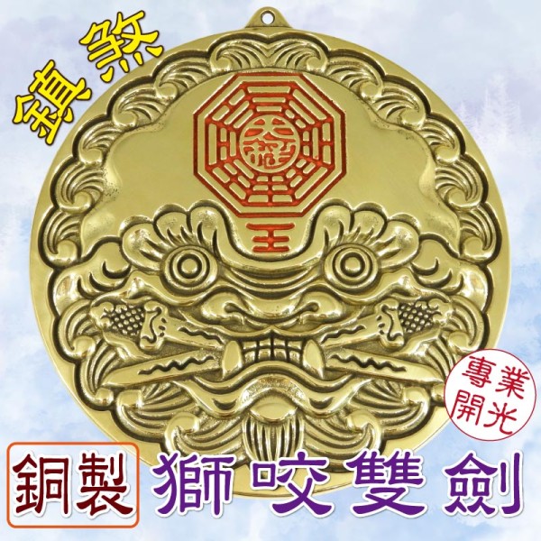 商店【吉祥開運坊】【銅製雙劍獅咬劍 純銅雙劍獅咬劍(紅) 化外煞 壁刀 路沖 鎮宅 保平安】開光 擇日