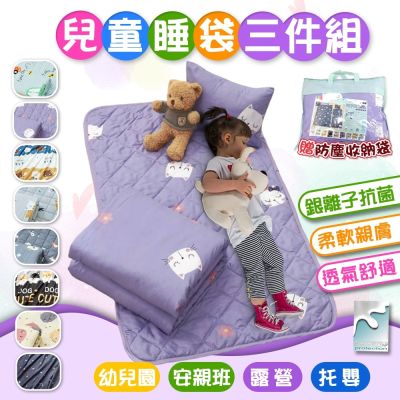 DF 童趣館 - 銀離子抗菌兒童三件式睡墊組 附提袋 - 多款可選