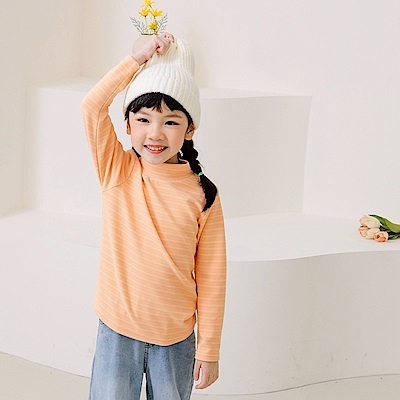 OB嚴選-高領條紋彈力磨毛保暖上衣