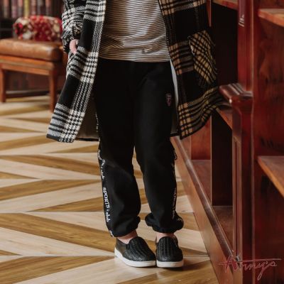 Annys安妮公主-童裝 1989運動風秋冬款內刷毛彈性棉長褲*2497黑色