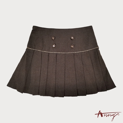 Annys安妮公主-質感排釦造型秋冬款拉鍊百褶短裙*5264咖啡$642