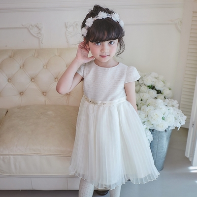 Annys安妮公主-百褶紗裙秋冬款短袖禮服(花童 婚禮 畢業)*8207米白$1,341