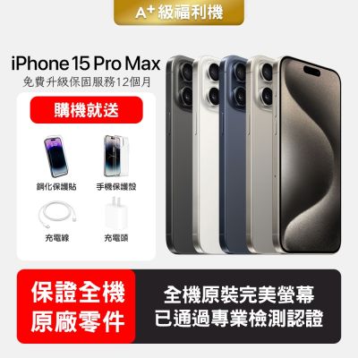 【Apple 蘋果】A+級福利品 iPhone 15 Pro Max 256GB 6.7吋智慧型手機(保證全機原廠零件+全方位保固升級12個月)$21,998$23,155