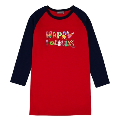 Crocodile Junior小鱷魚童裝-聖誕印圖異色圓領洋裝-C64384$58835折