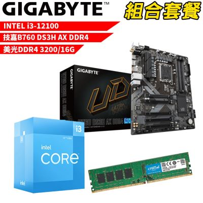 【組合套餐】Intel i3-12100 處理器+技嘉 B760 DS3H AX DDR4 主機板+美光 DDR4 3200 16G 記憶體$9,120$9,599