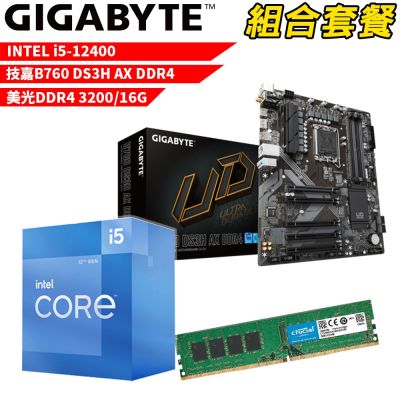 【組合套餐】Intel i5-12400 處理器+技嘉 B760M DS3H AX 主機板+美光 DDR5 4800 16G 記憶體$10,735$11,299