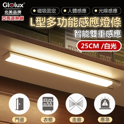 【Glolux 北美品牌】買一送一 L型多功能USB磁吸式LED智能感應燈 25公分(白光/黃光)