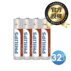 【PHILIPS飛利浦】3號AA碳鋅電池 共32顆(4入*8)$220