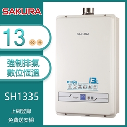 櫻花牌 SH-1335 數位恆溫13L強制排氣熱水器
