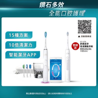 【Philips 飛利浦】官方直營 Sonicare鑽石靚白智能音波震動牙刷/電動牙刷 HX9924/02(晶鑽白)$7,990