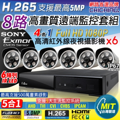 【CHICHIAU】H.265 8路4聲 5MP 台灣製造數位高清遠端監控套組(含1080P SONY 200萬攝影機x6)$11,621$11,980