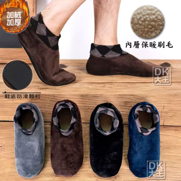 秋冬保暖 男生款 加絨加厚 襪口加高 防滑地板襪 地板鞋 室內鞋 家居鞋【DK大王】