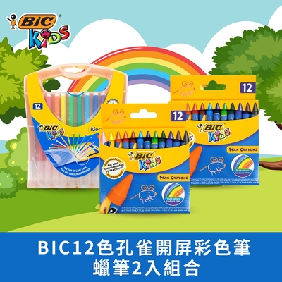 BIC12色孔雀開屏彩色筆+蠟筆2入組合包$380$399