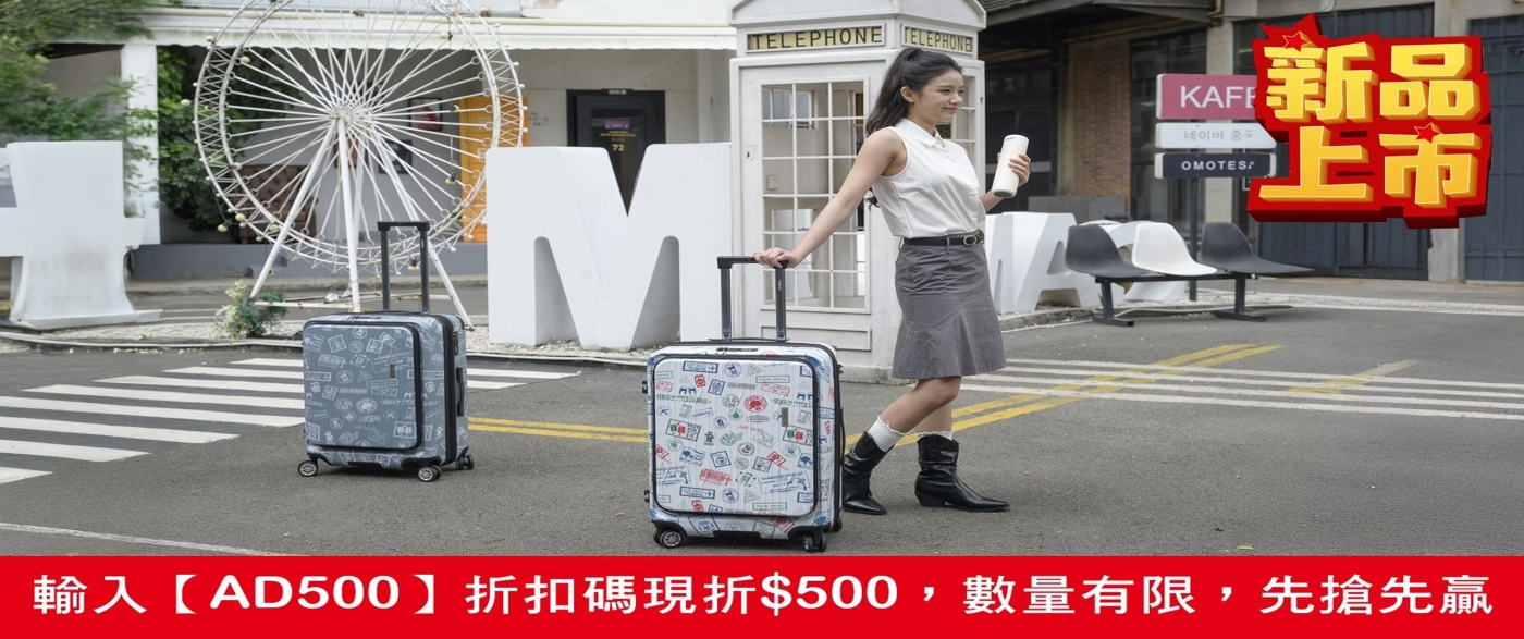 (買一送九)【Alldma鷗德馬】20吋 台味郵戳 擴充加大 防爆雙層拉鏈 避震輪 雙開箱/登機箱/行李箱-3色