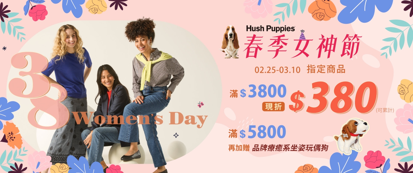 Hush Puppies T恤 女裝Q版造型花朵植絨印花刺繡狗短袖T恤