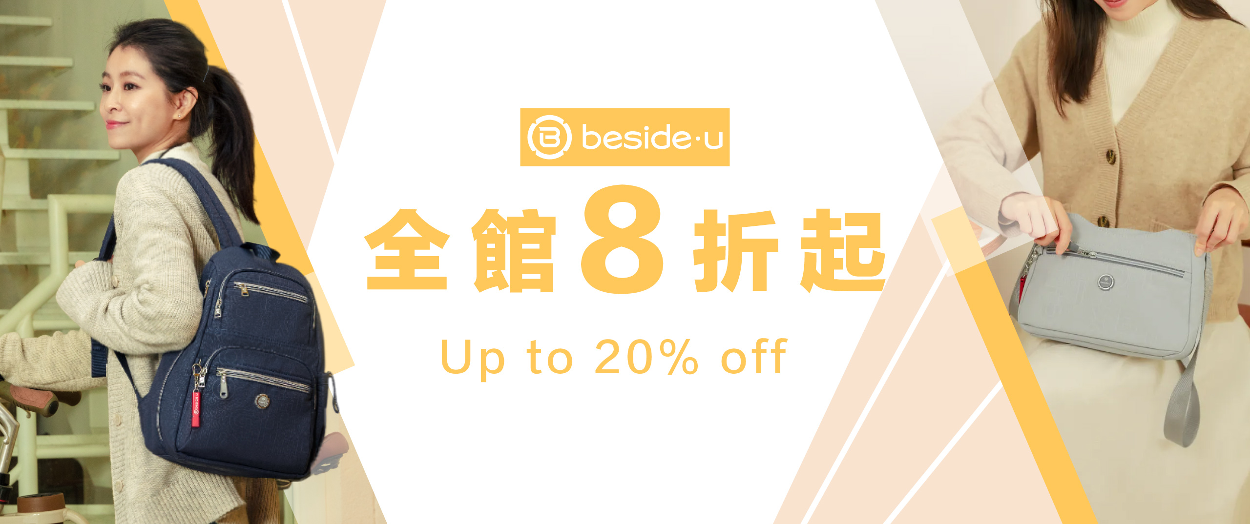 beside u 加厚包中包/化妝包 旅行收納包 雙格層斜背包 幾何款 黑白字母款 BMJ